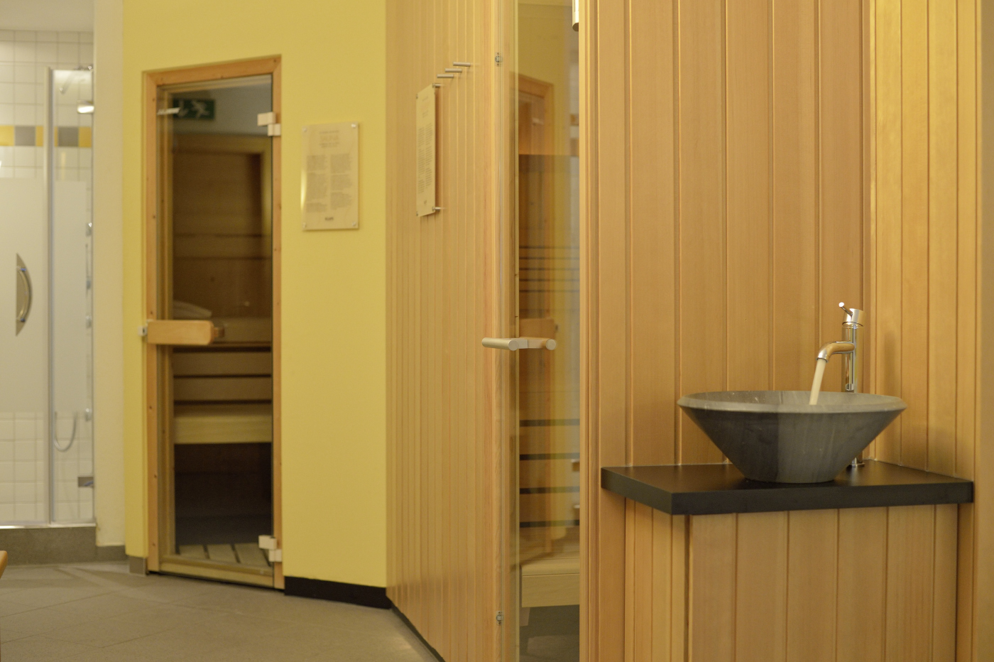 Handtücher finden Sie im Saunabereich und um den Kreislauf zwischen den Saunagängen auf Touren zu bringen, gibt es eine Dusche zur Erfrischung.