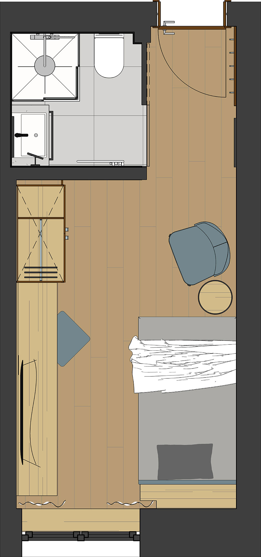 Allen Soloreisenden bietet das Einzelzimmer einen Rückzugsort voller Gemütlichkeit und Komfort. Man kann am Schreibtisch Mails beantworten, den Blick nach draußen genießen und jederzeit zu Erlebnissen aufbrechen. Die beste Poleposition für Me-Time und eine Auszeit ganz für sich.