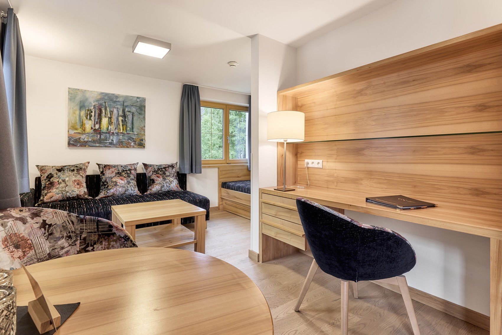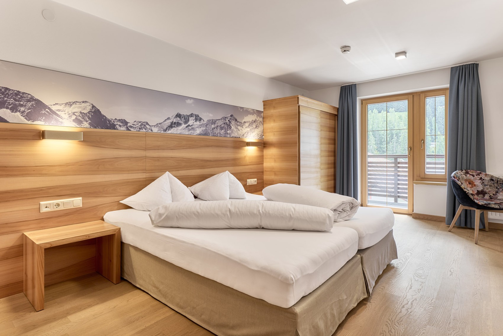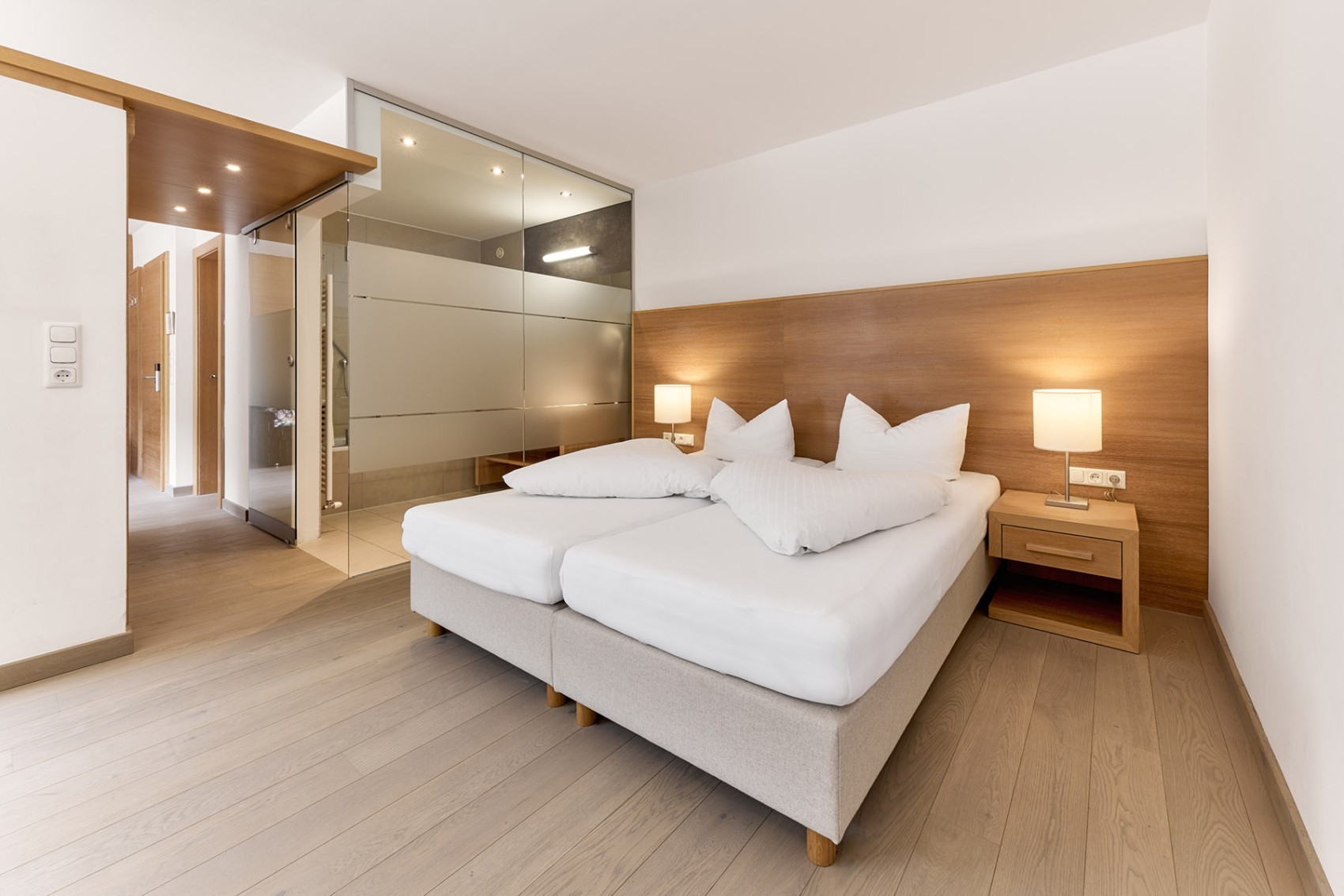 Für alle, die gerne die Familienzeit oder Zweisamkeit auf dem Balkon genießen, sind diese Suiten perfekt. Es gibt genug Schlafgelegenheiten für bis zu vier Gäste und viel Platz zum Wohlfühlen – vor allem durch das heimelige, moderne Flair. Die Boxspringbetten lassen sich trennen. Und damit Sie ungestört ein Bad genießen können, ist das WC separat.
