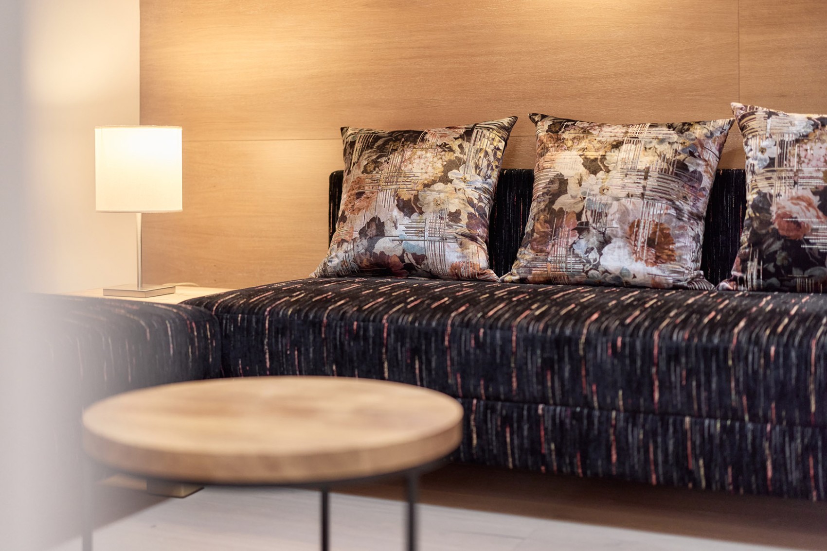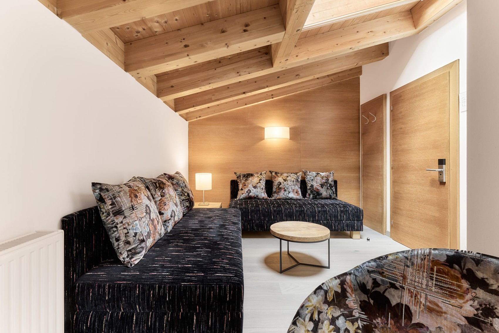 Die moderne Suite ist ideal für Paare oder für Familien mit zwei Kindern – die Sitzgelegenheiten werden zu Betten und auch das Boxspringbett lässt sich trennen. Hier trifft Tiroler Gemütlichkeit auf modernen Komfort – vom Eichenparkett bis zur Badewanne im gläsernen Badezimmer. Das WC ist separat.